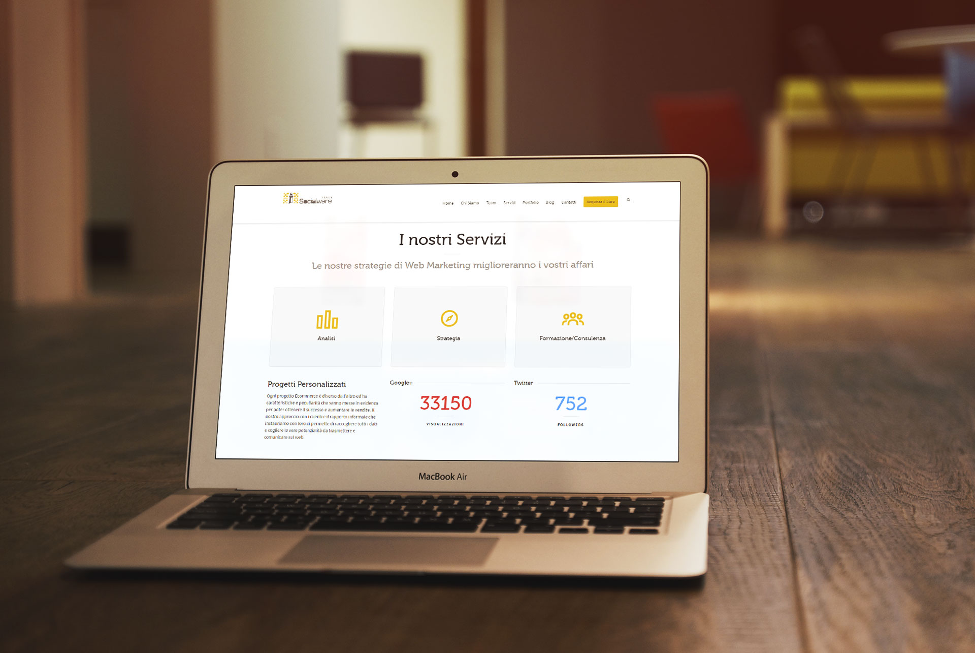 Logo, immagine coordinata e sito web per azienda specializzata in servizi di web marketing, gestione di e-commerce e siti web. thesocialware.com